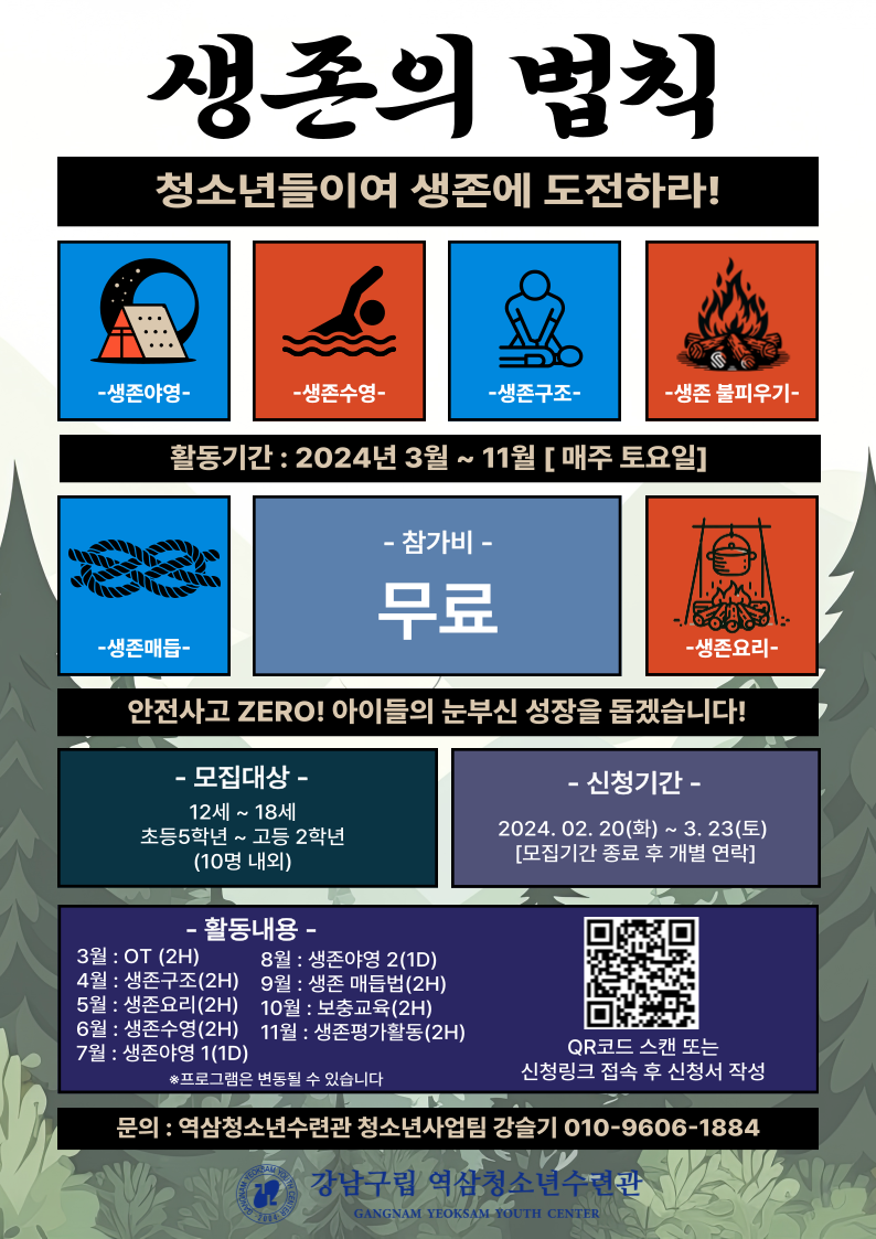 안녕하세요 강남구립 역삼청소년수련관에서 안내드립니다.