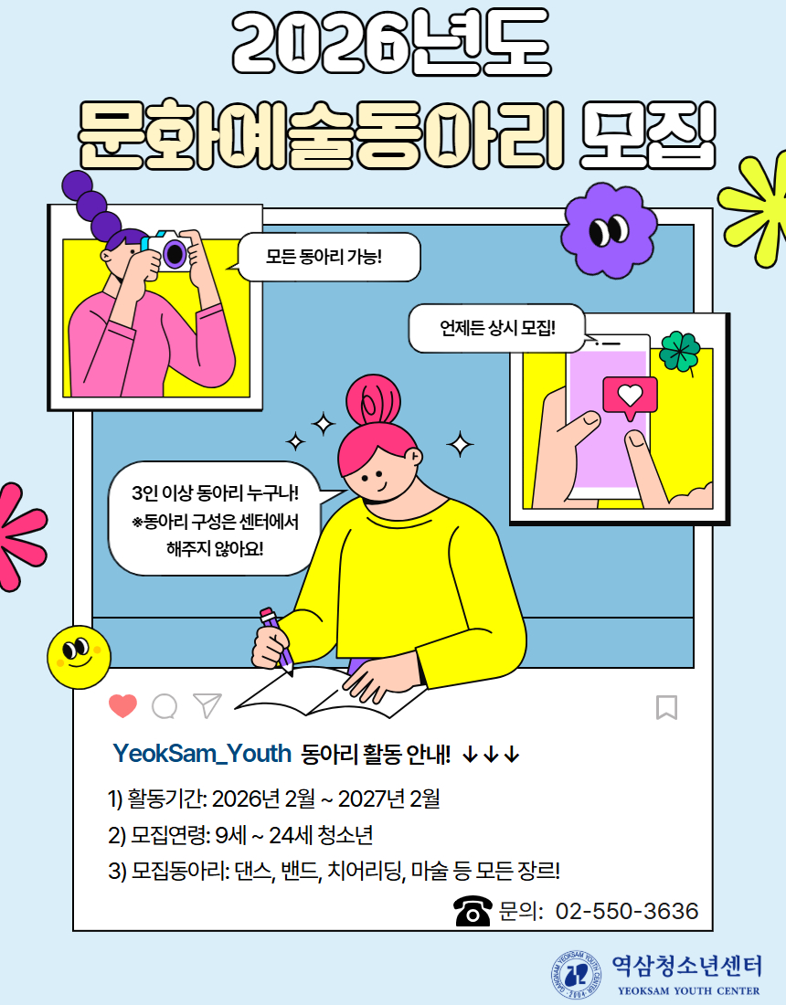 ※첨부파일 '2026년 청소년 문화예술동아리 모집 세부 안내를 꼭 확인해주세요!
