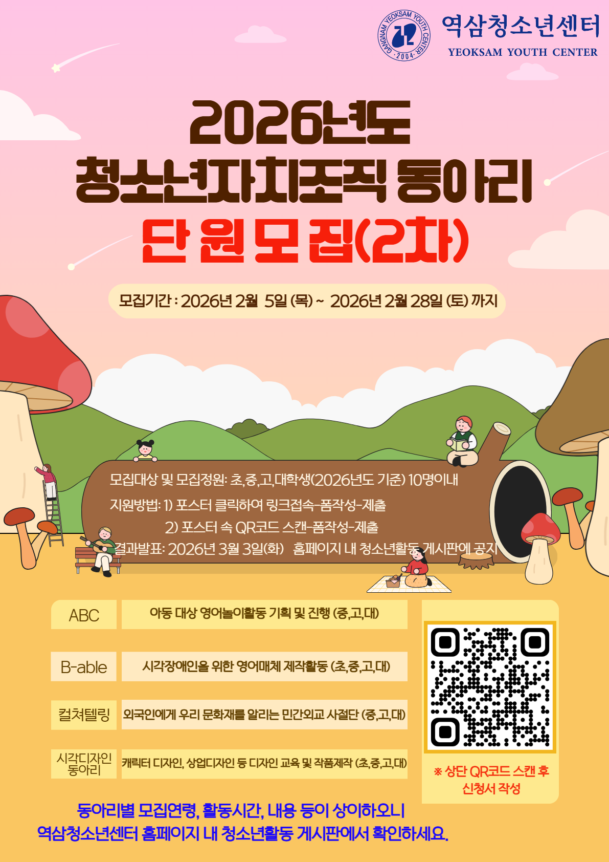 ■활동대상: 2026년 기준 만9세~24세 활동가능한 청소년(동아리별 상이)