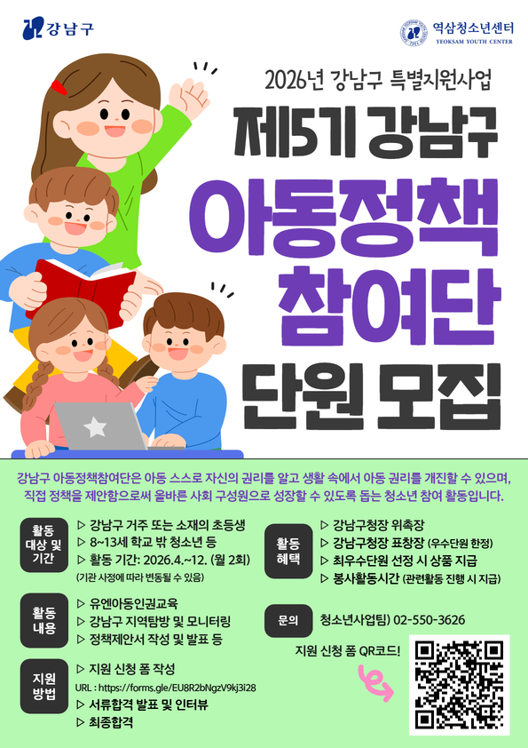 강남구 제5기 아동정책참여단 단원 모집합니다.