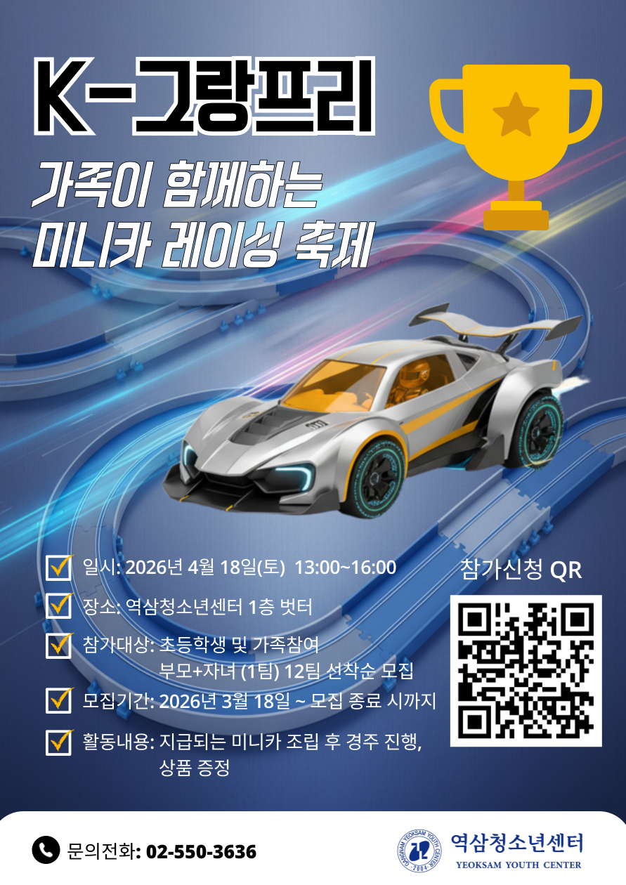 청소년과 부모님이 함께 미니카를 조립하고 경주를 진행하는 K-그랑프리가 2026년에도 진행됩니다!!