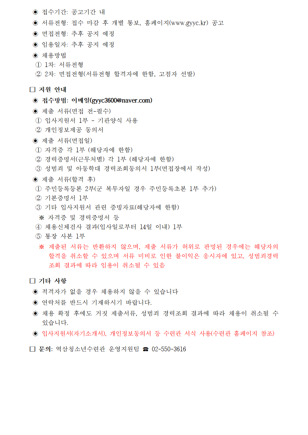 2023년도 제2차 역삼청소년수련관 신규 직원 채용 공고