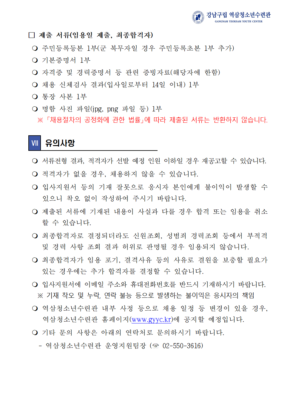 2022년도 제6차 역삼청소년수련관 신규직원 채용 공고