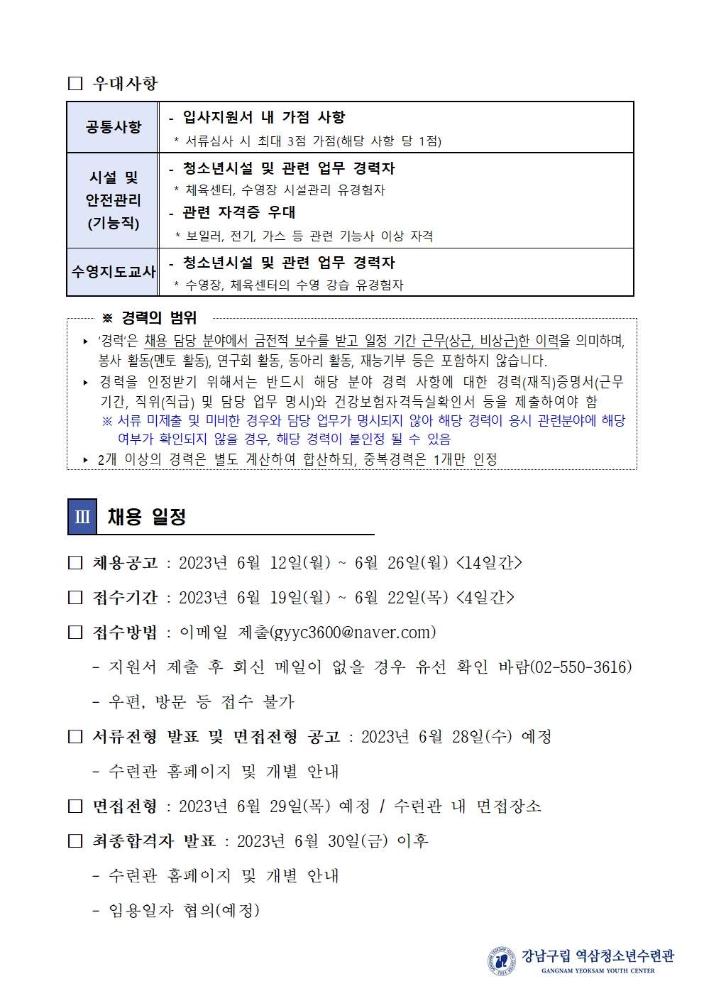 (재공고) 2023년도 역삼청소년수련관 직원 채용 공고(7차)