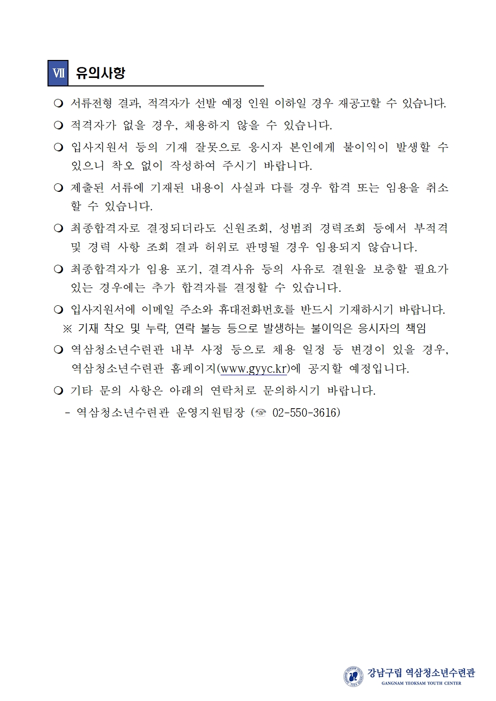 2023년도 역삼청소년수련관 직원 채용 공고(7차)