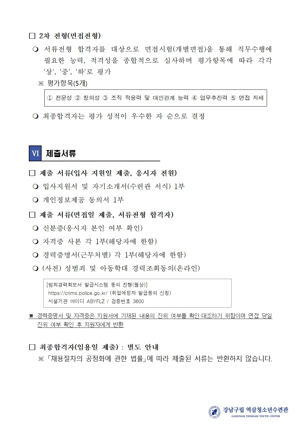 2023년 제6차 역삼청소년수련관 신규직원 채용 최종합격자 공고