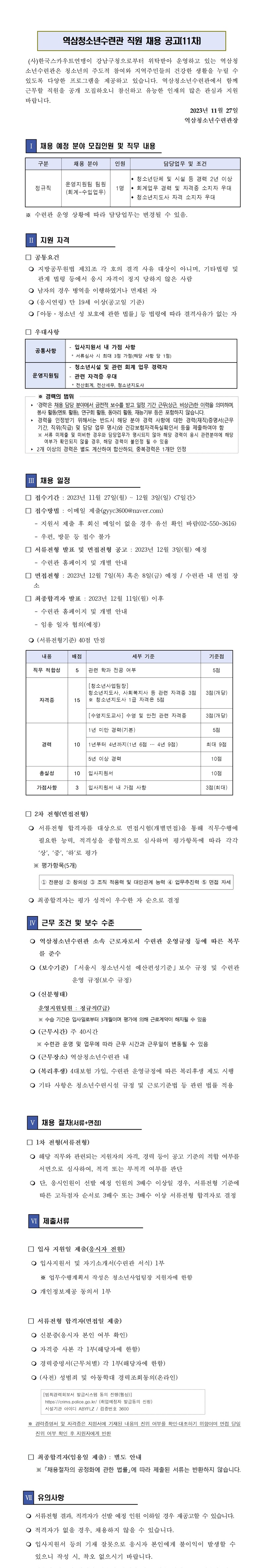 2023년도 역삼청소년수련관 직원 채용 공고(11차)