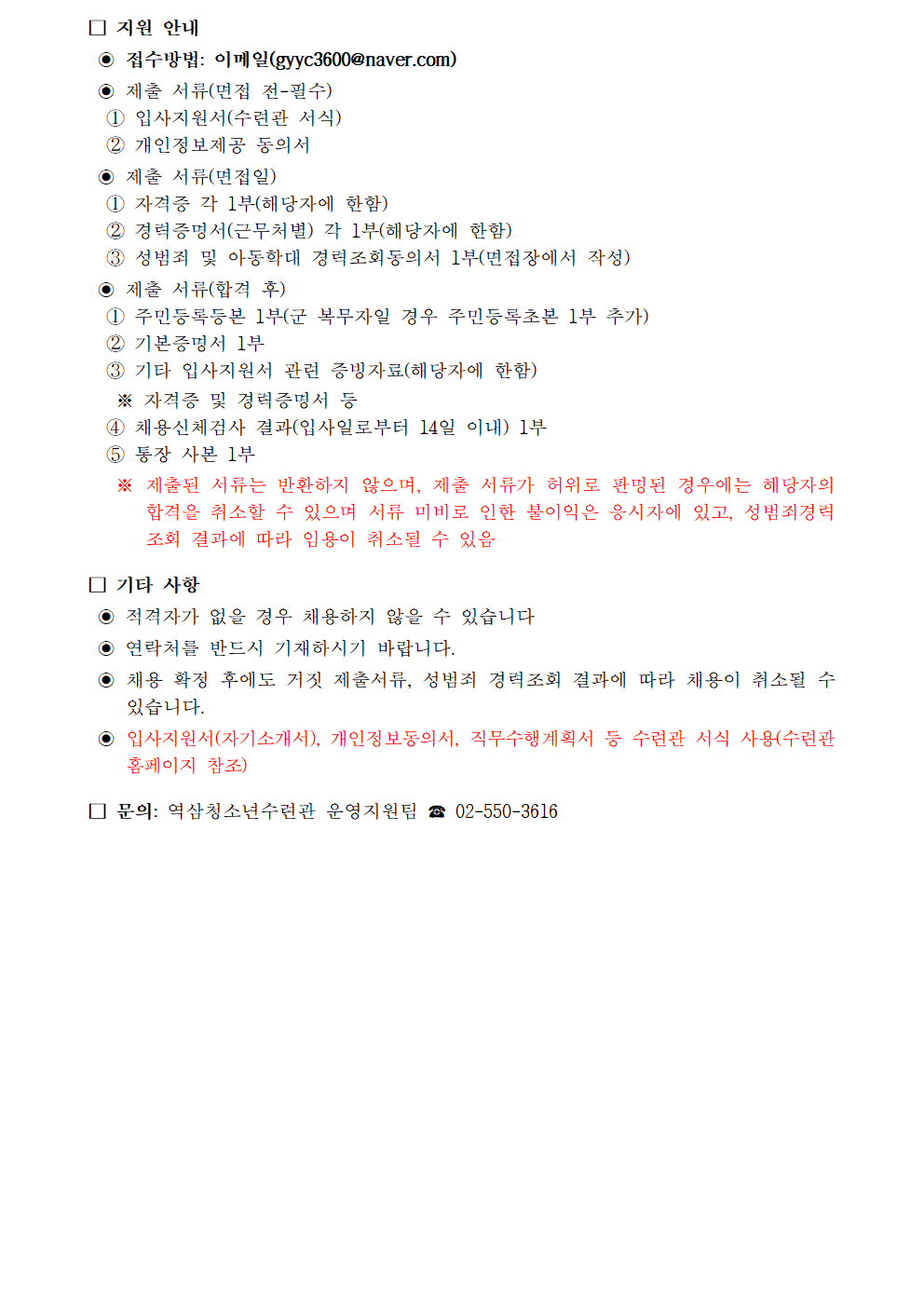 2022년도 제6차 역삼청소년수련관 신규직원 채용 공고