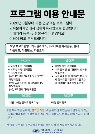 - 역삼청소년센터 공사 휴관 안내(수영장, 헬스장, 탈의실, 샤워장) 2025-12-23
