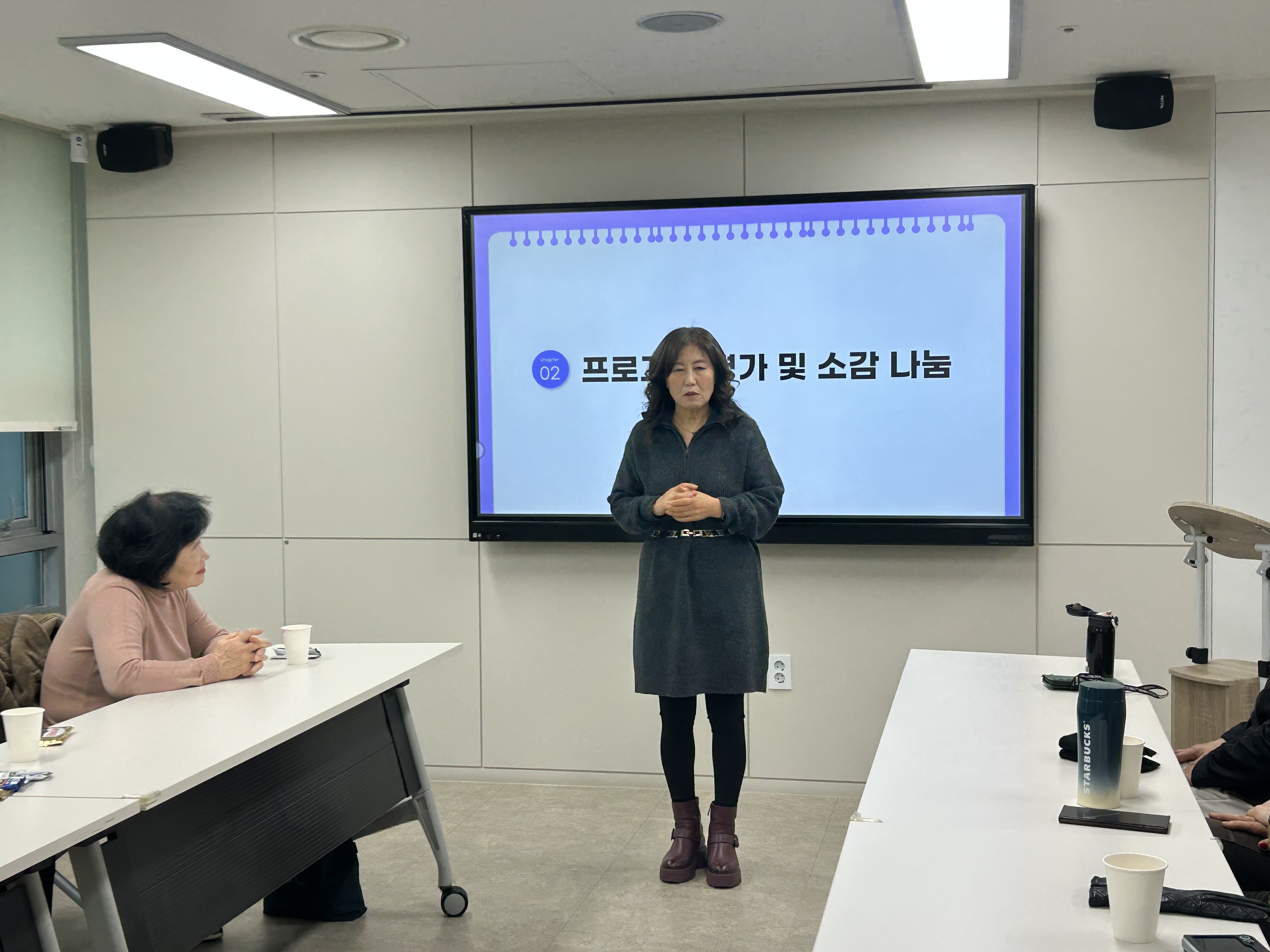*내 용: 시니어 디지털 리더단 평가회 및 2기 발대식을 진행하였습니다. 앞으로 지역사회를 위해 디지털 리더단 재능나눔활동을 펼칠 계획입니다.