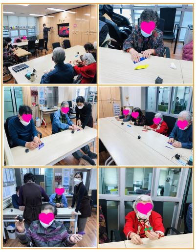 어르신들과 함께 종이 바람개비 만들기 활동을 진행하였습니다.