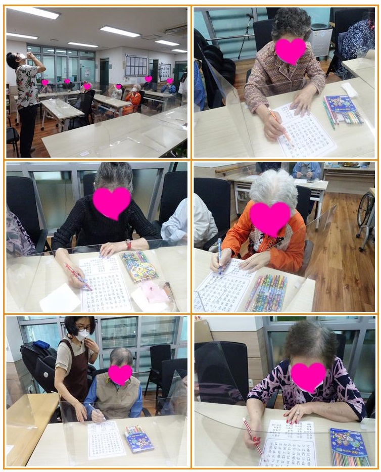 오늘은 어르신들과 함께 인지활동인 " 날말찾기"를 진행하였습니다.