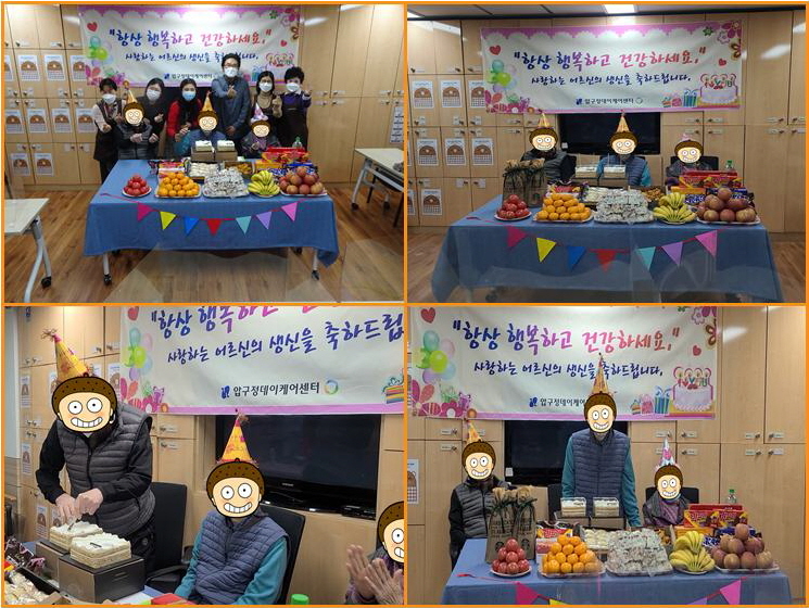 : 11월 생신어르신의 생신잔치가 진행되었습니다. 세분이나 생신을 맞이하셔서 아주 풍족한 생신상이 차려졌습니다.