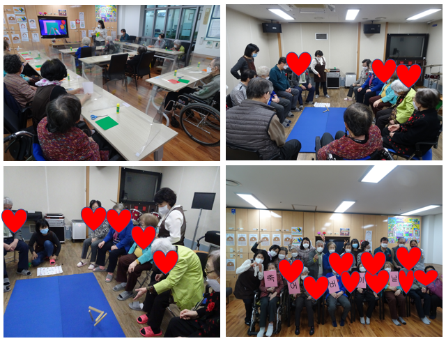 내용: 어버이 날을 맞이하여 압구정데이케어센터 어르신들과 함께 했던 활동 영상보기와 꽃 만들기를 진행하였습니다.