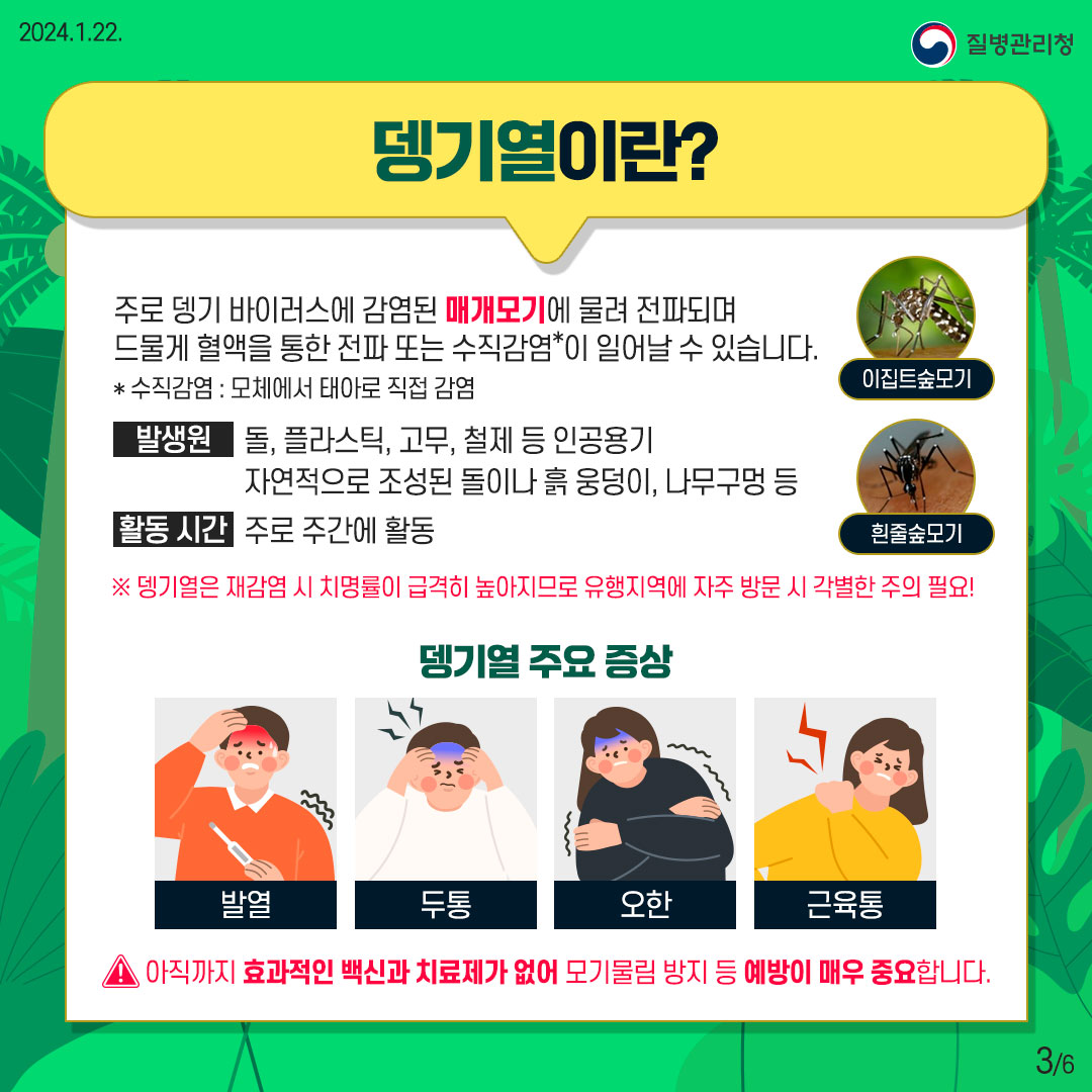 안전하고 즐거운 해외여행, 뎅기열 예방수칙 실천에서 시작됩니다!