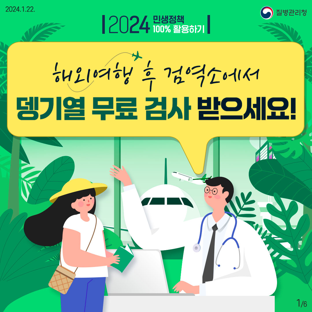 ✅ 해외 방문 후 뎅기열 의심증상 발생 시 검역소에서 무료 뎅기열 신속키트검사 실시
