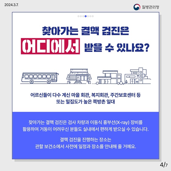 여러분이 사는 곳 가까이에서 결핵 검진 받으세요!