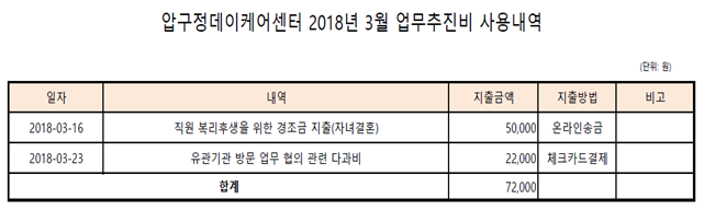압구정노인복지센터 2018년 3월 업무추진비 사용내역