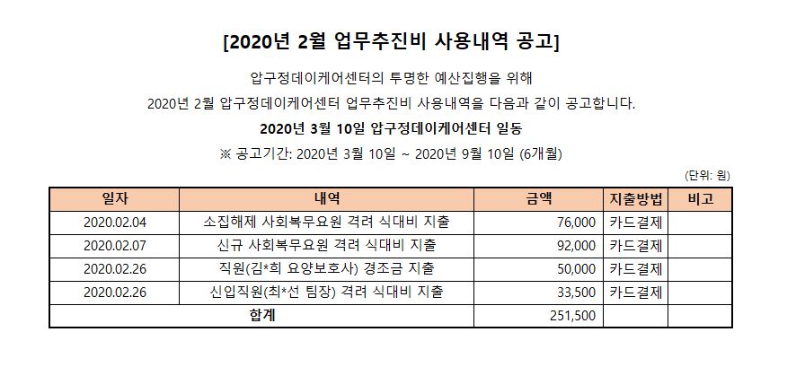 (병설)압구정데이케어센터 2020년 2월 업무추진비 사용내역