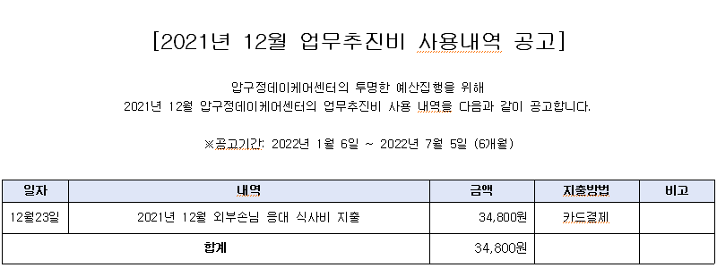 병설)압구정데이케어센터 2021년 12월 업무추진비 사용내역