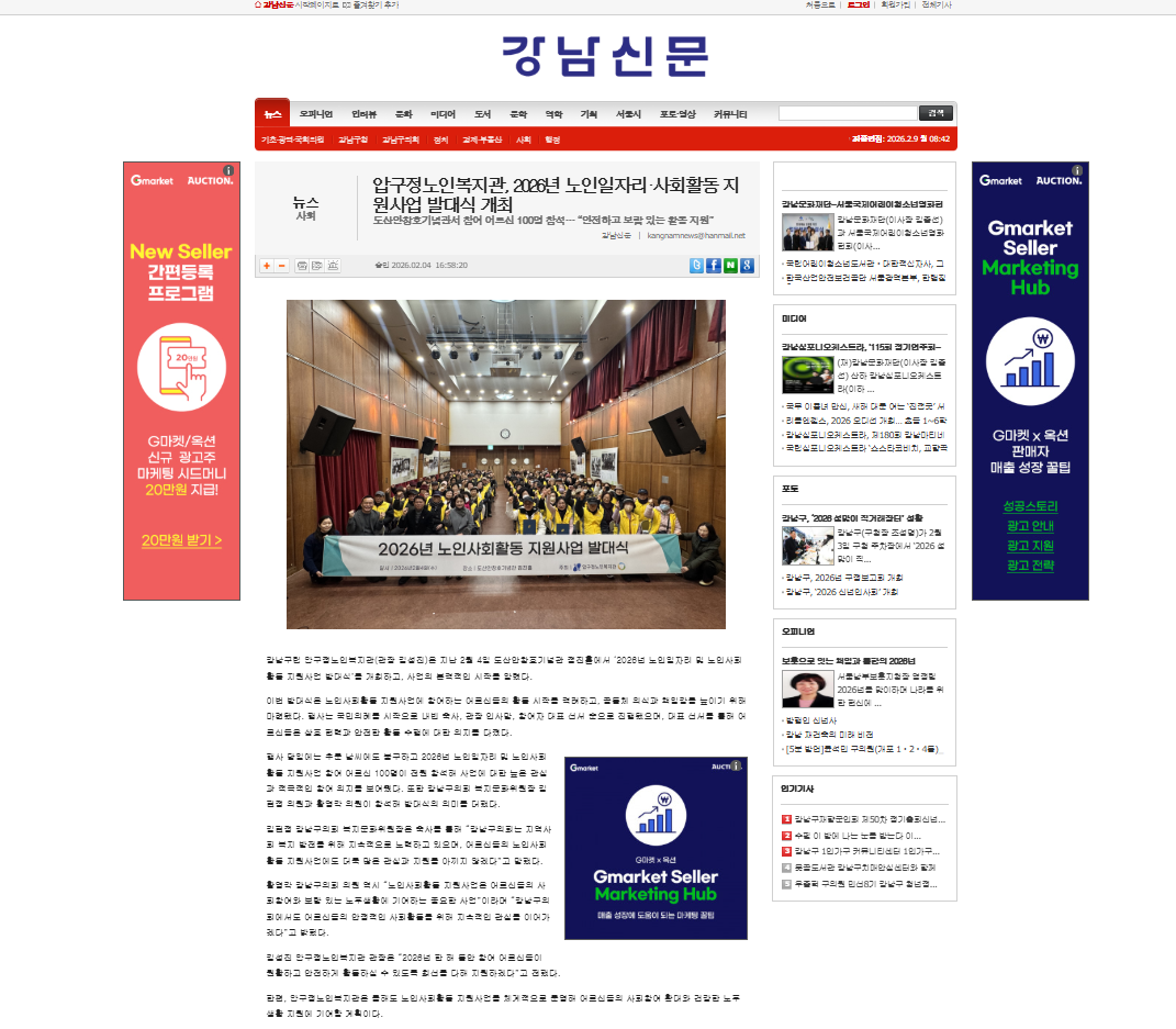 [강남신문] 압구정노인복지관, 2026년 노인일자리·사회활동 지원사업 발대식 개최