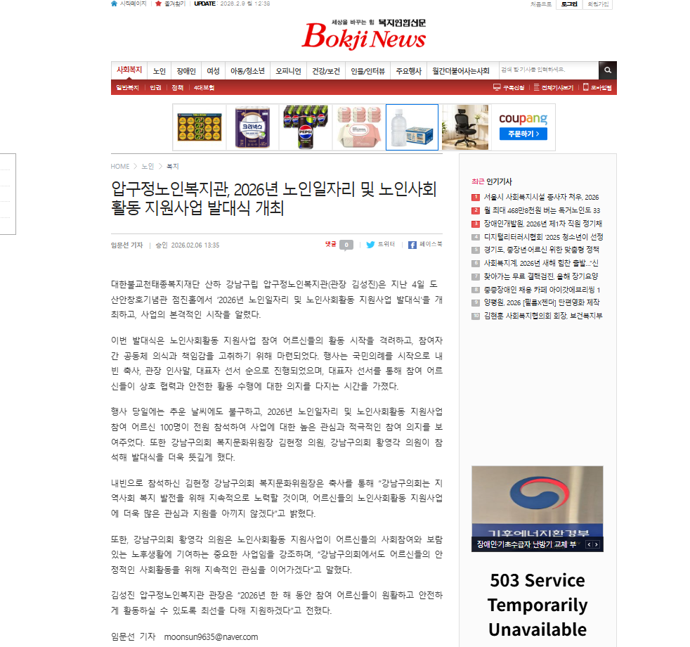 [금강신문] 압구정노인福, 2026년 노인일자리 발대식 개최