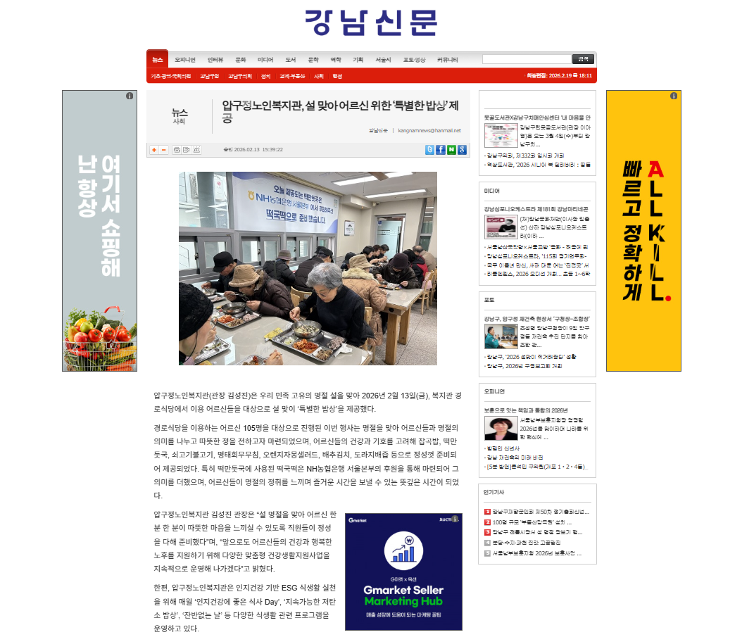 [강남신문] 압구정노인복지관, 설 맞아 어르신 위한 ‘특별한 밥상’ 제공