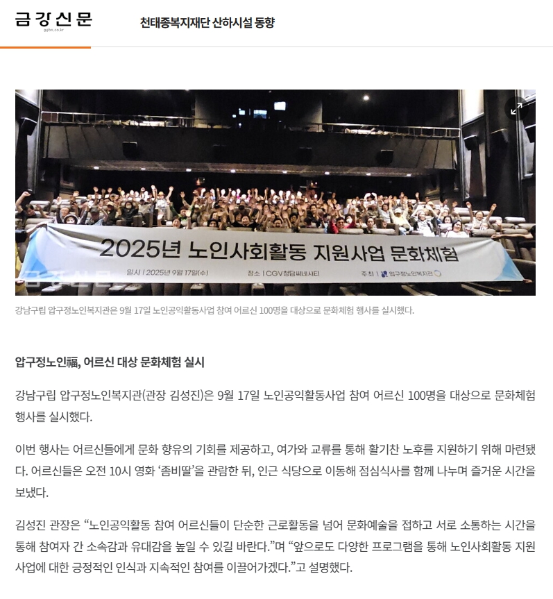 [서울자치신문] 강남구 노인공익활동사업 참여 어르신 100명, 문화체험 즐겨