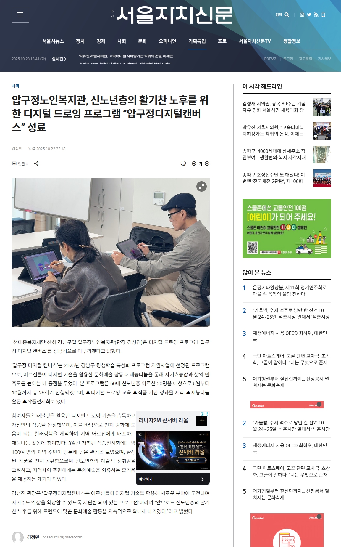 [서울자치신문] 압구정노인복지관, 신노년층의 활기찬 노후를 위한 디지털 드로잉 프로그램 “압구정 디지털 캔버스” 성료