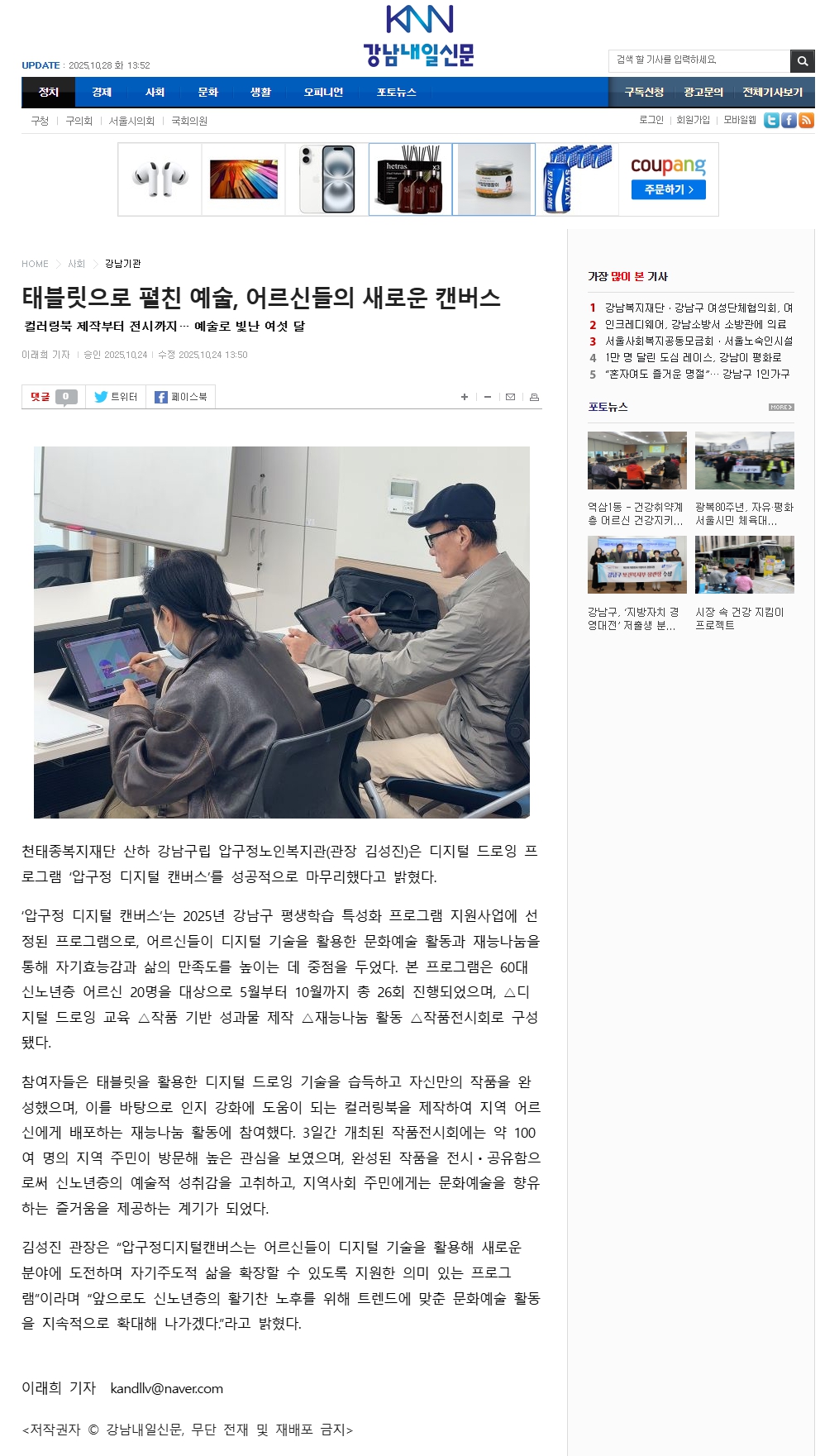 [강남내일신문] 태블릿으로 펼친 예술, 어르신들의 새로운 캔버스