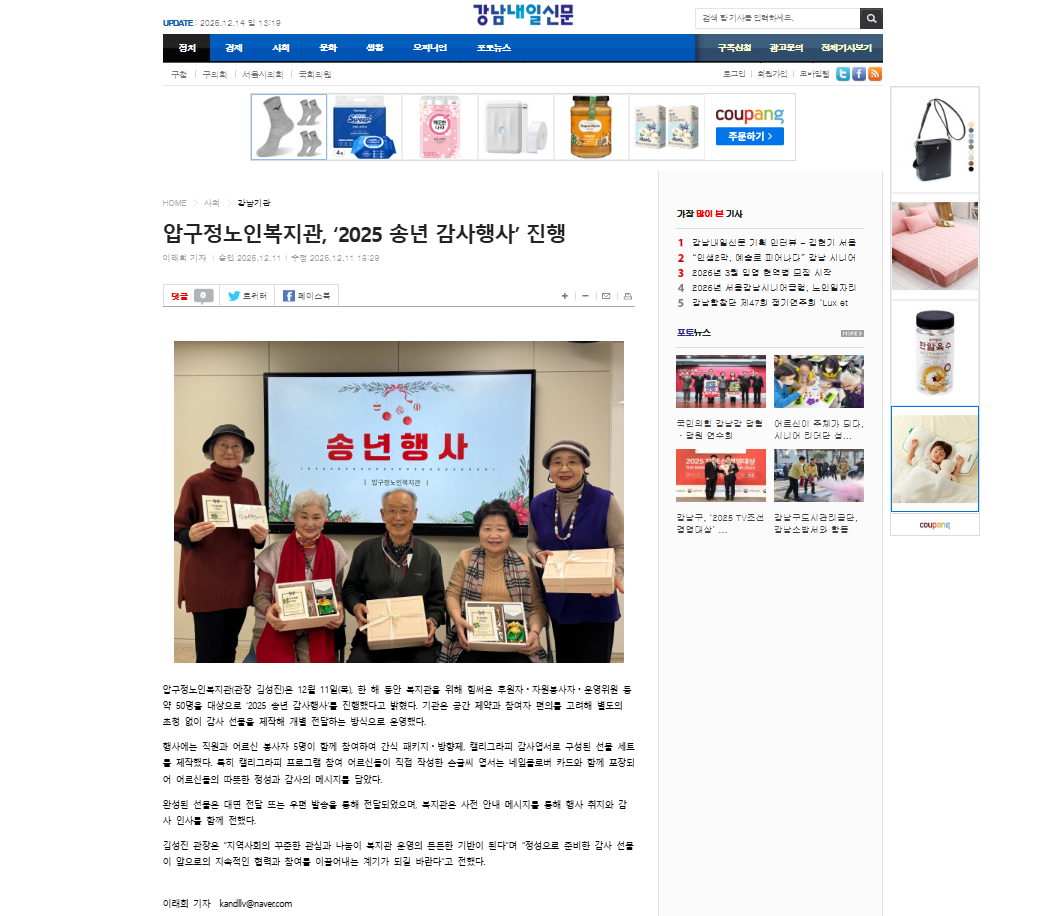 [강남내일신문] 압구정노인복지관, ‘2025 송년 감사행사’ 진행