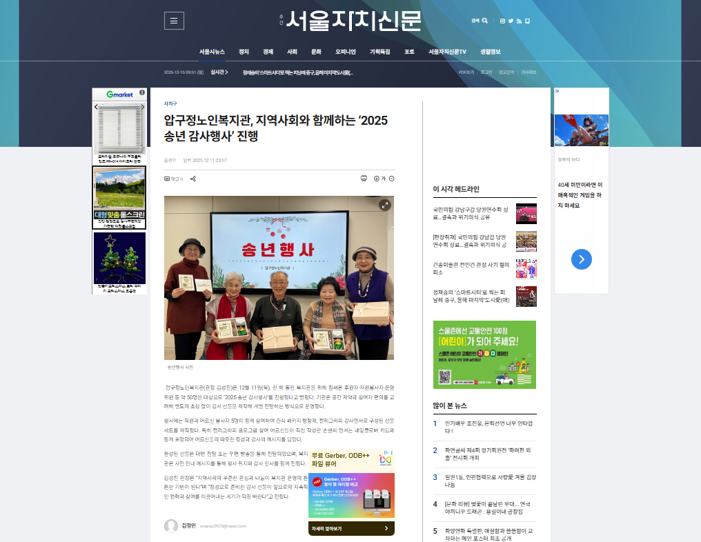 [서울자치신문] 압구정노인복지관, 지역사회와 함께하는 ‘2025 송년 감사행사’ 진행