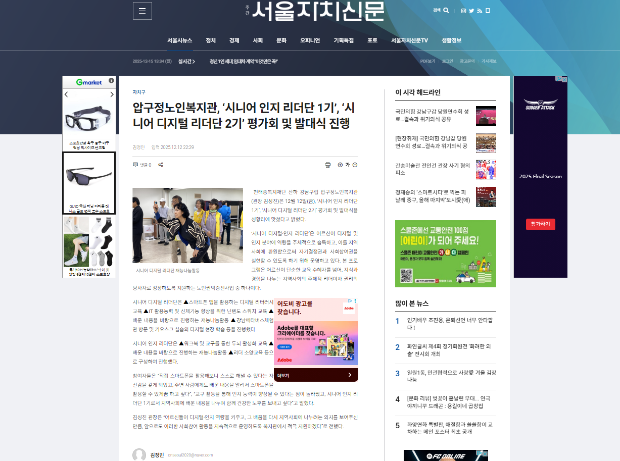[서울자치신문] 압구정노인복지관, ‘시니어 인지 리더단 1기’, ‘시니어 디지털 리더단 2기’ 평가회 및 발대식 진행