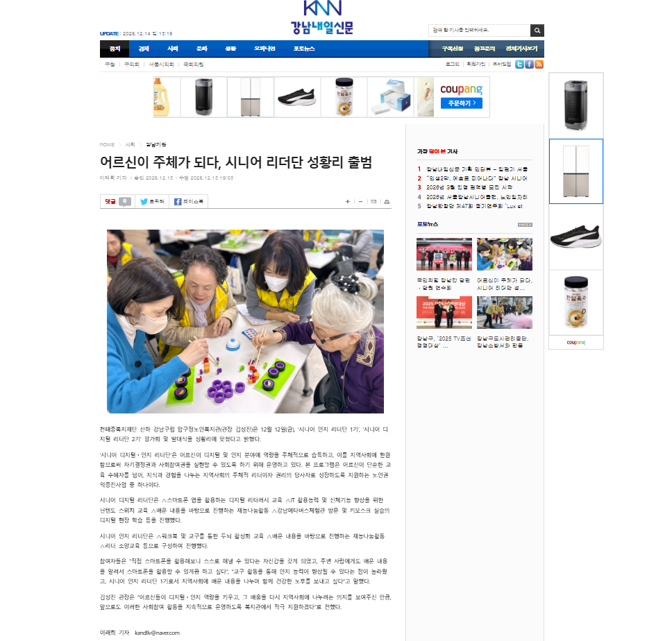 [강남내일신문] 어르신이 주체가 되다, 시니어 리더단 성황리 출범