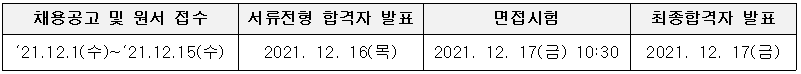 - 면 접 : 서류전형 합격자에 한하여 면접 실시(개별통보)