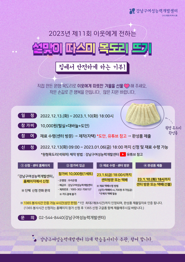 ▶ 참가비: 10,000원(털실+대바늘+도안)