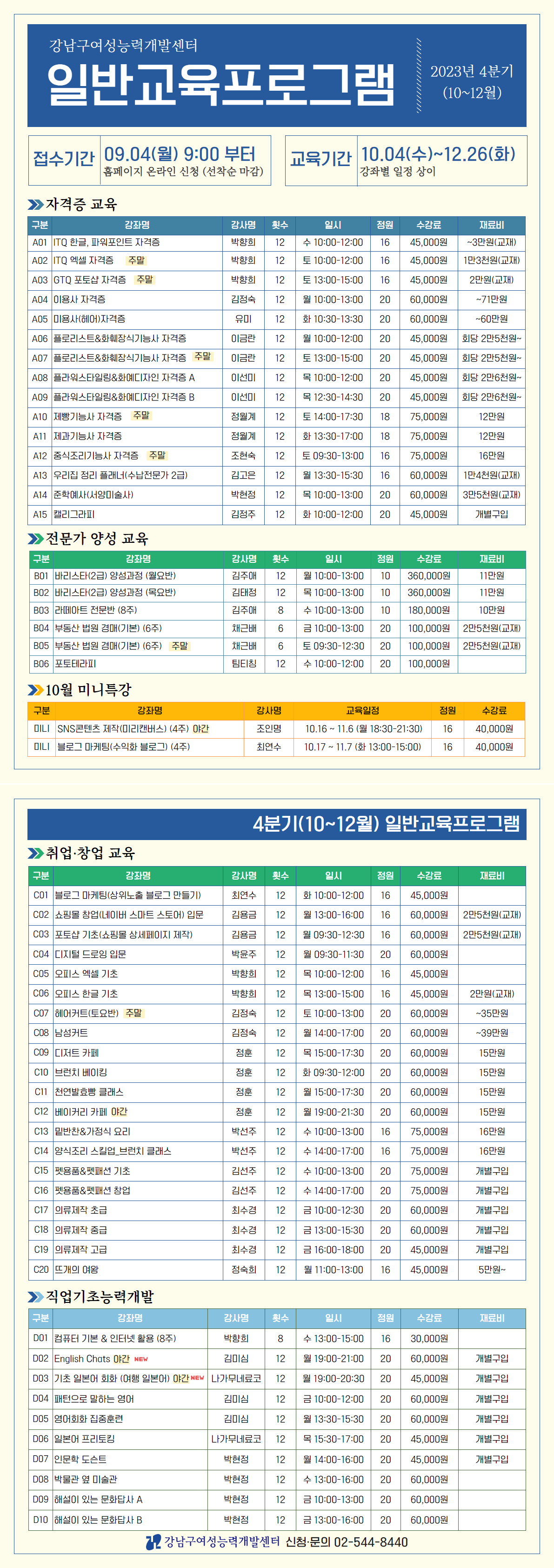 [일반] 2023년 4분기 일반교육프로그램 안내