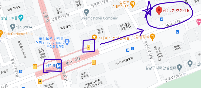 - 장소 : 강남구 삼성2동 주민센터 앞 (선정릉역 2번 출구 방향)