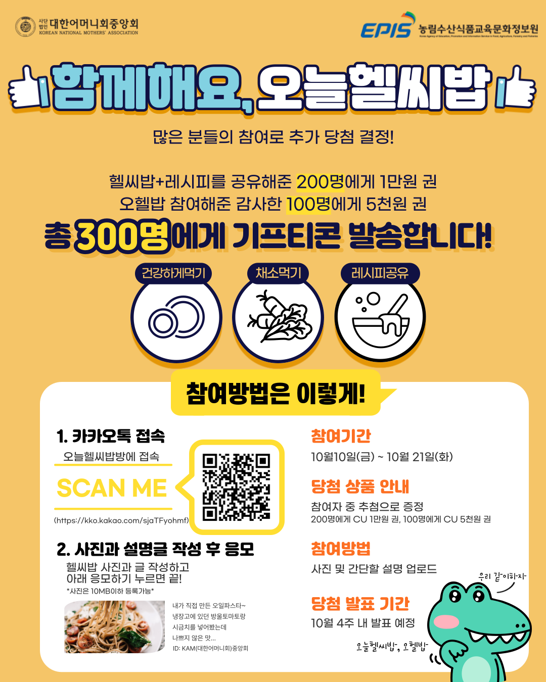 참여형 온라인 캠페인「함께해요, 오늘헬씨밥」에 많은 참여 바랍니다.