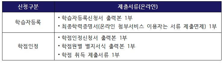 학점은행제 과목을 수강하시는 분은 학습자등록은 최초 1회, 학점인정신청은 종강 후 3주 뒤에 가능합니다.