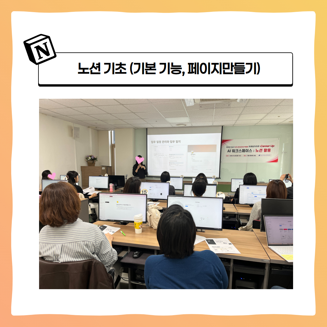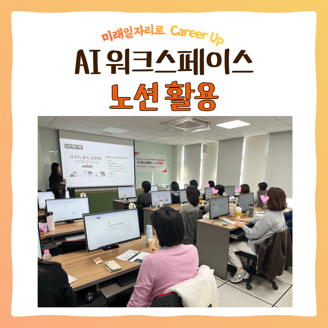 센터는 '경력단절여성을 위한 4차 산업 일자리 박람회’의 ‘커리어 ON 특강’ 프로그램으로 ‘노션(Notion) 활용 특강’을 진행했습니다.