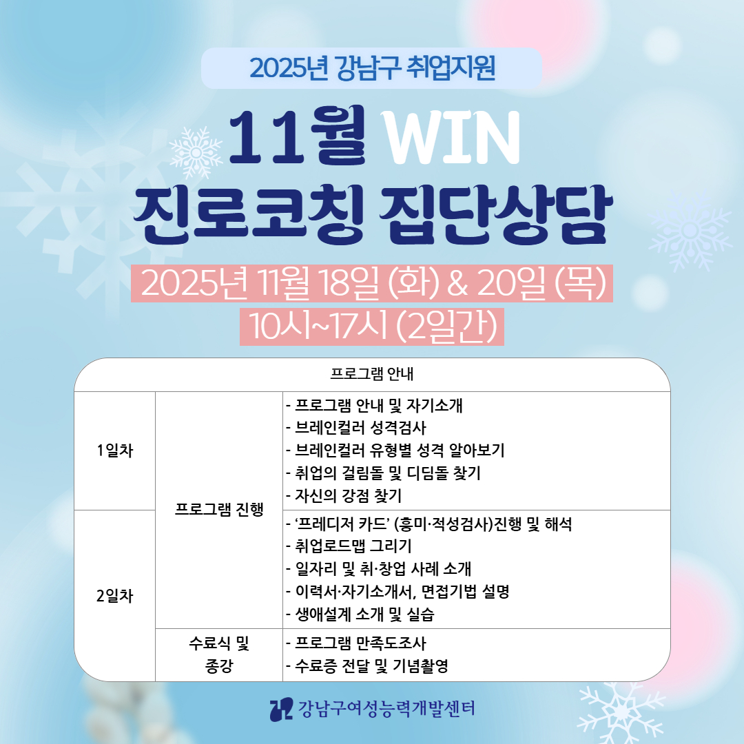2025년 강남구 경력단절여성을 위한 미래일자리로 Career up! -소상공인 창업아카데미-