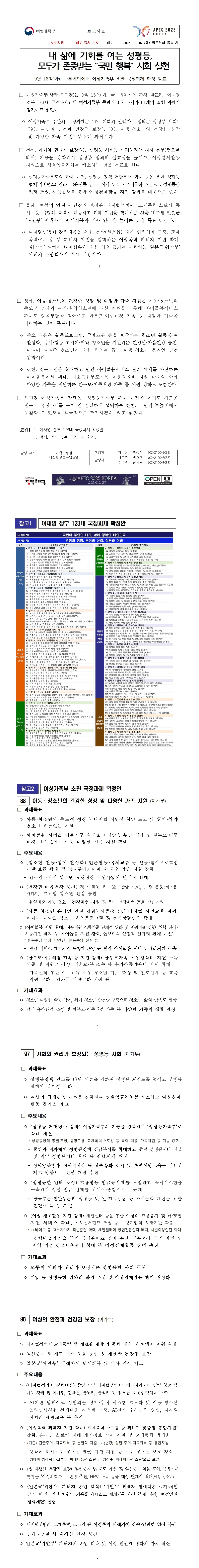 내 삶에 기회를 여는 성평등, 모두가 존중받는 '국민 행복'사회 실현