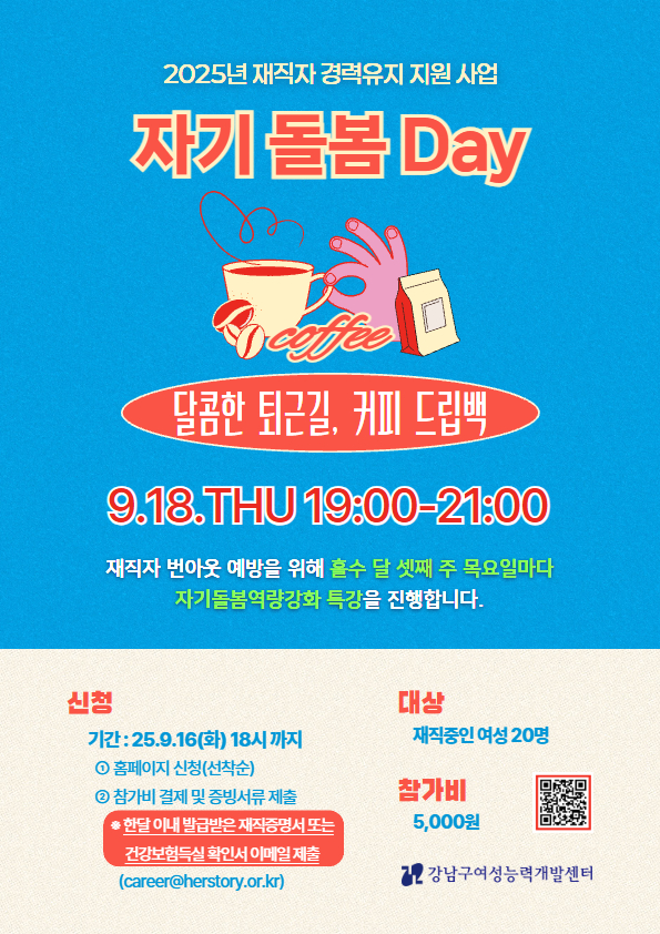 2025년 강남구여성능력개발센터 재직자 경력유지 지원사업 『자기돌봄Day』