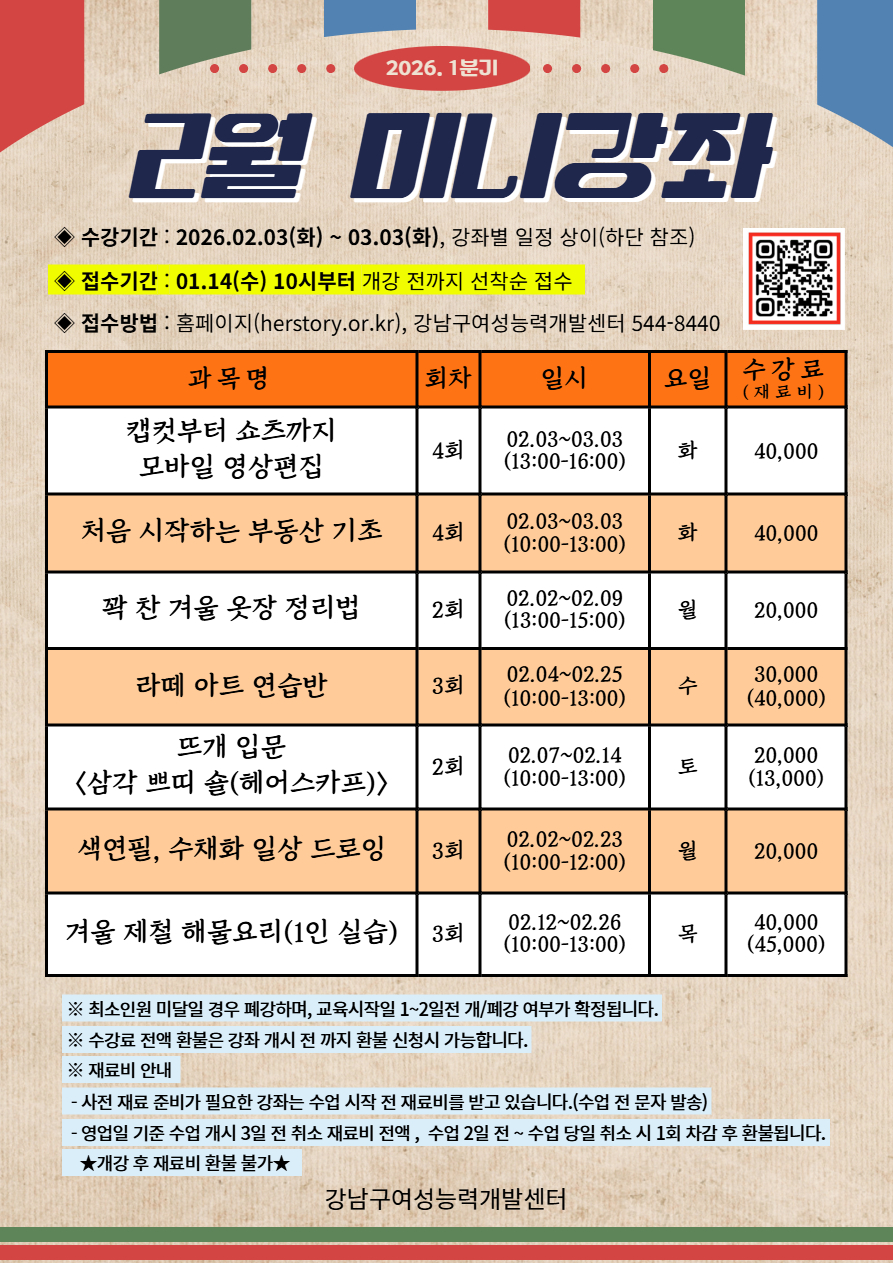 - [미니] 2026년 2월 미니강좌 수강생 모집 안내 2026-01-14