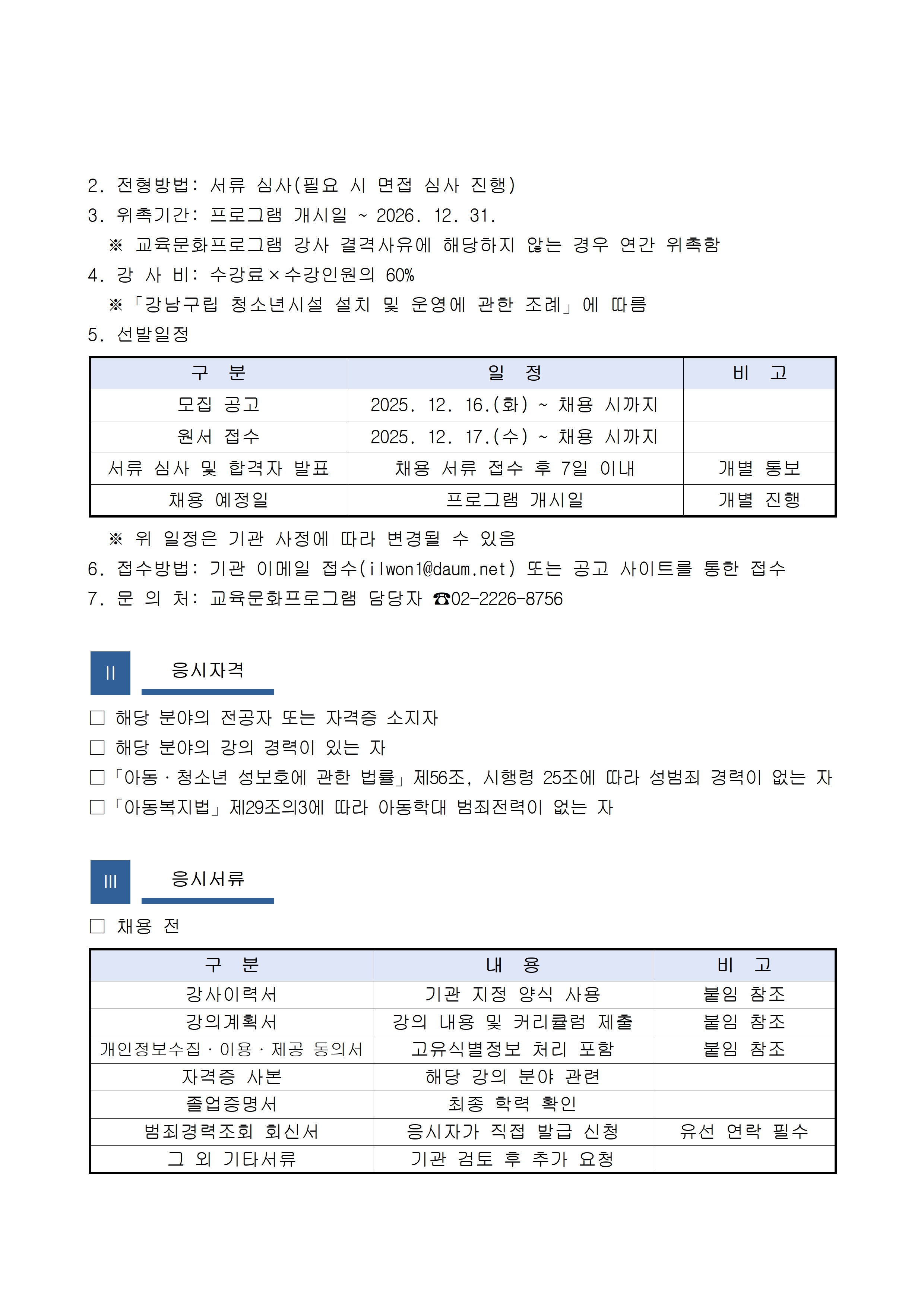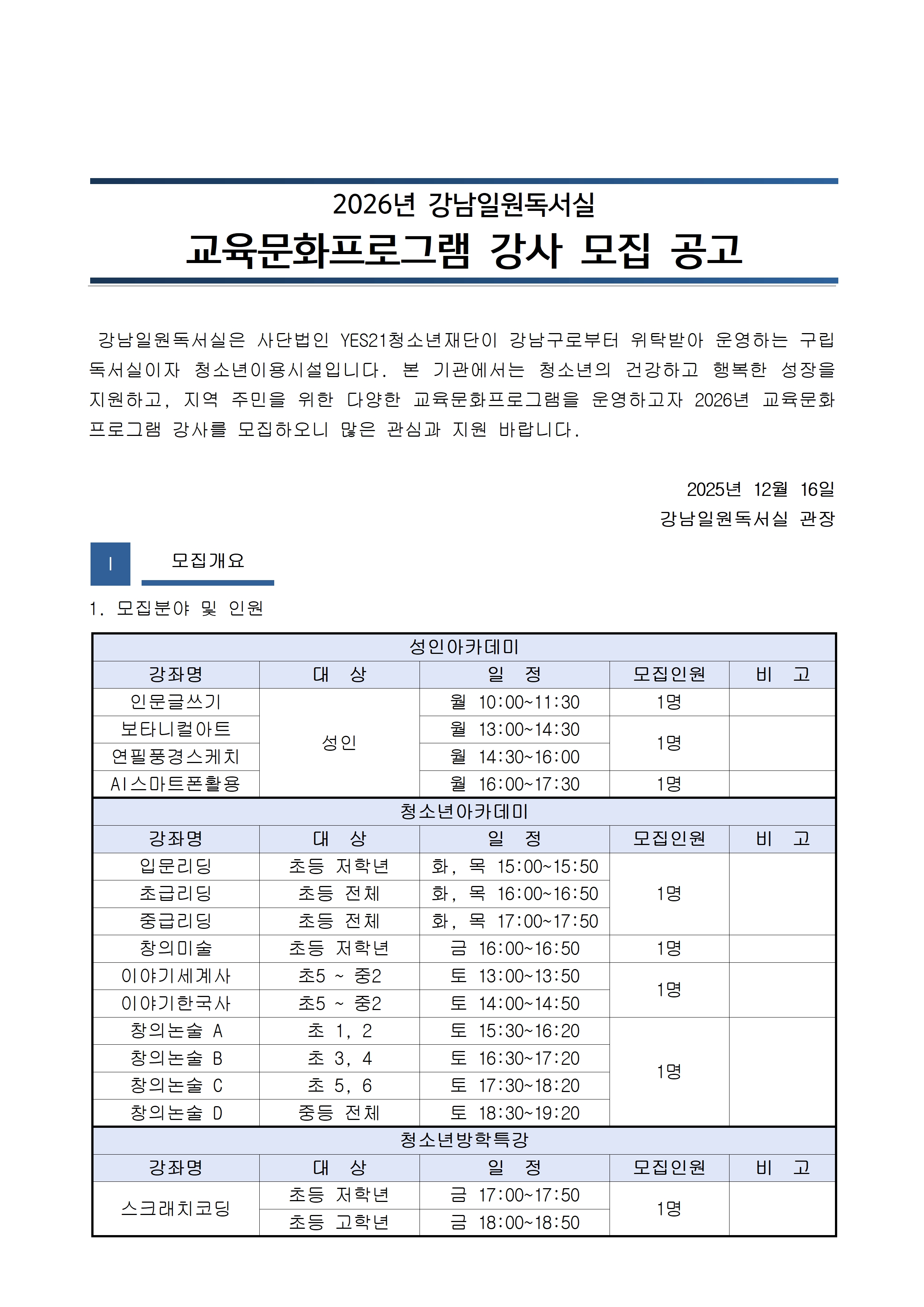 2026년 강남일원독서실 교육문화프로그램 강사 채용 필수서류 양식.hwp