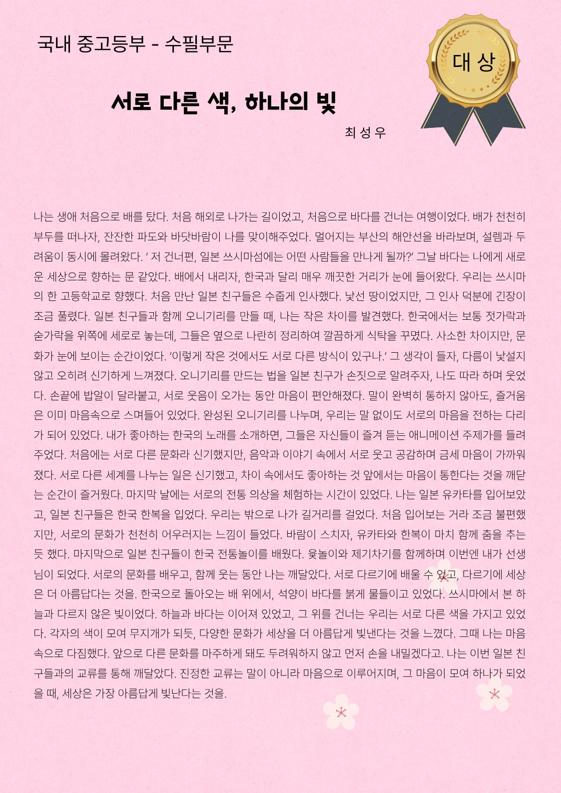 국내 중고등부 수필부문 금상