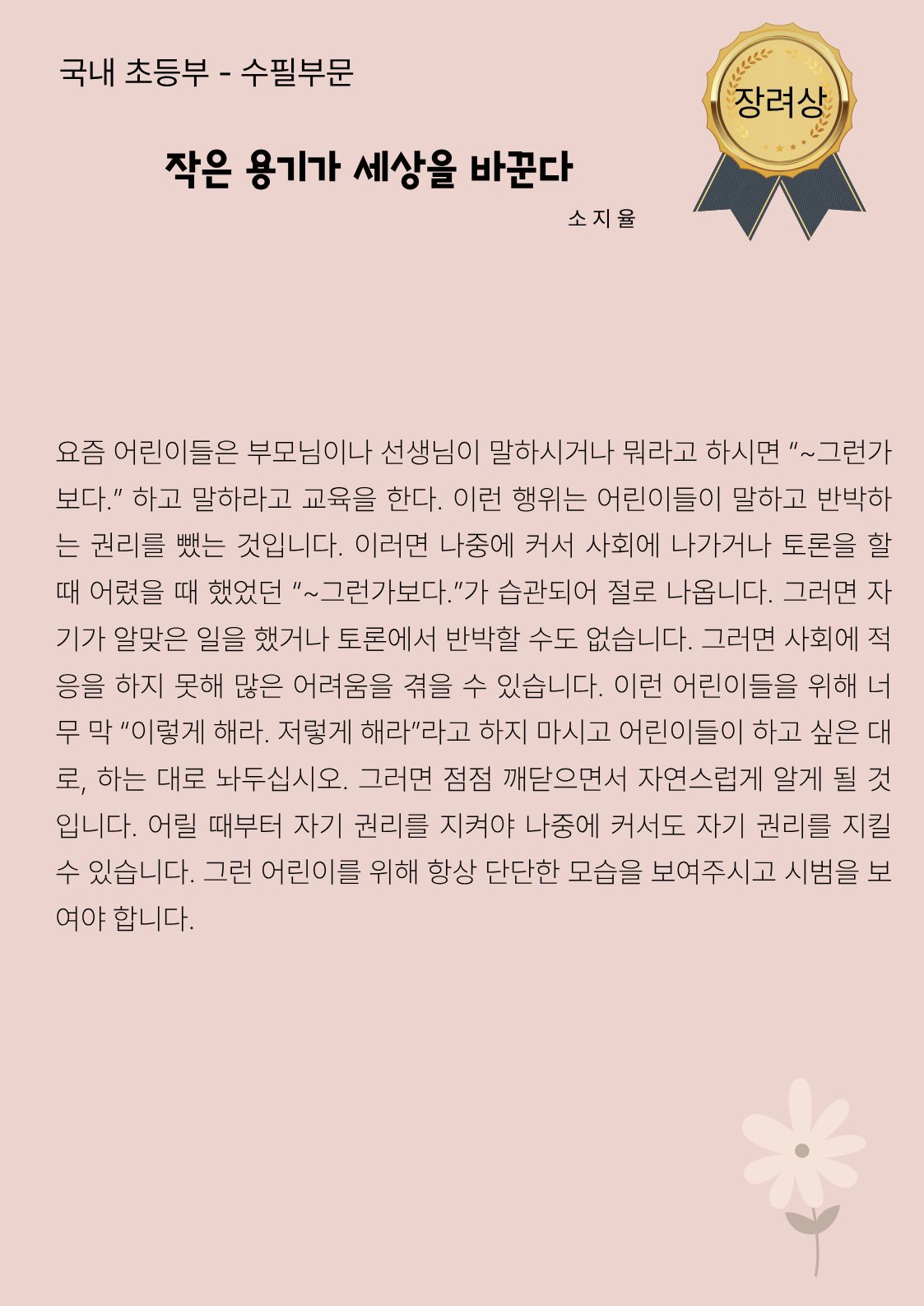 국내 초등부 수필부문 장려상