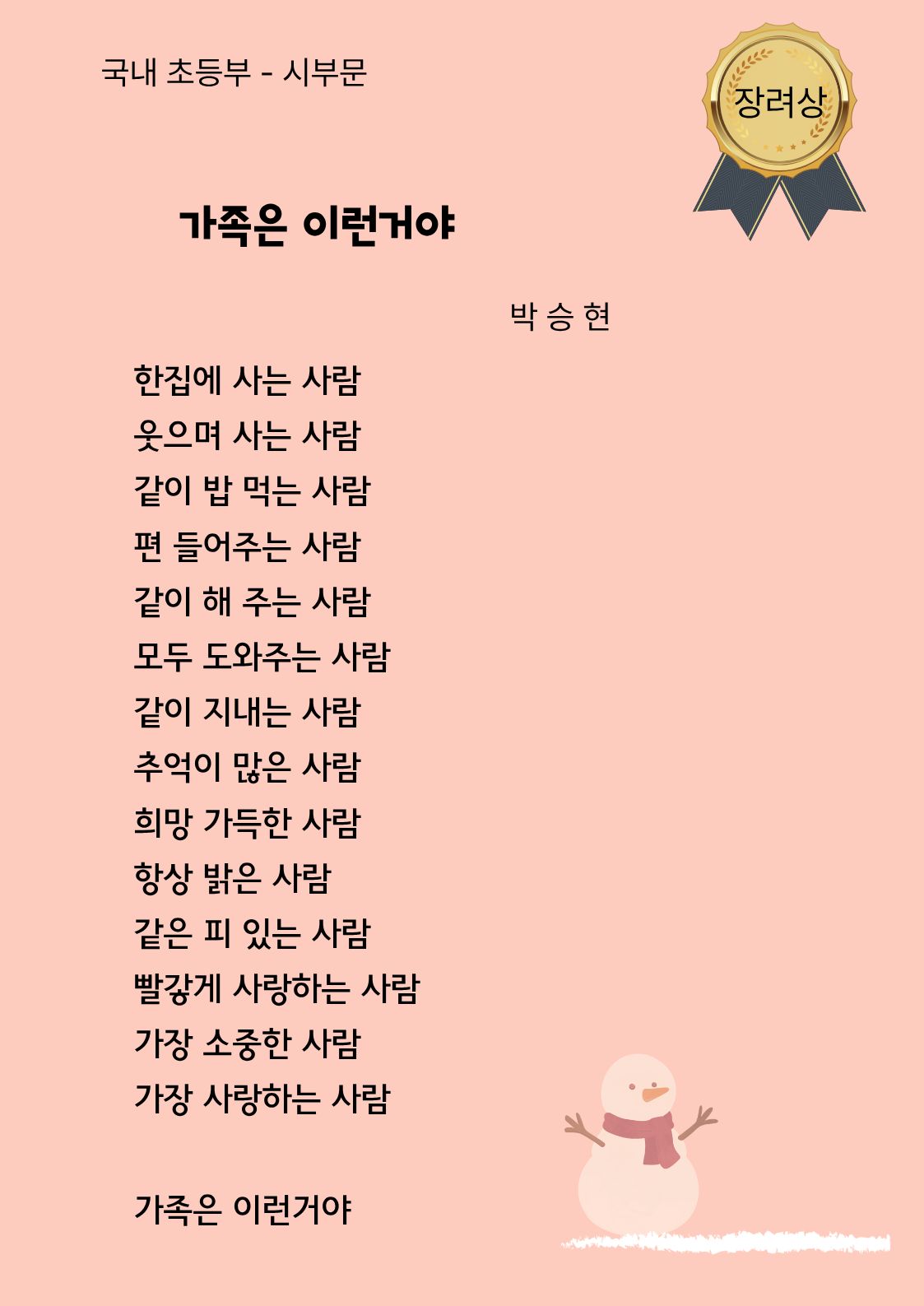국내 초등부 시부문 장려상