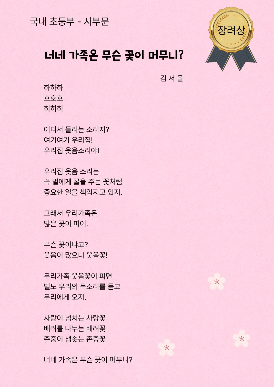 국내 초등부 시부문 장려상
